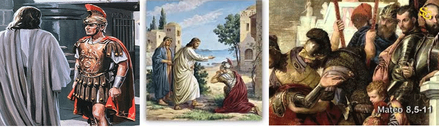 * A pessoa que procura Jesus é um pagão soldado do exército romano que dominava e explorava o povo. Não é a religião nem o desejo de Deus, mas sim a necessidade e o sofrimento que o levam a procurar Jesus. Jesus não tem preconceito. Não faz exigência prévia, mas acolhe e atende ao pedido do oficial romano.