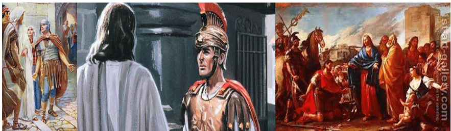 * Jesus ficou admirado e elogiou a fé do centurião. A fé não consiste em aceitar, repetir e decorar uma doutrina, mas sim em crer e confiar na pessoa de Jesus.