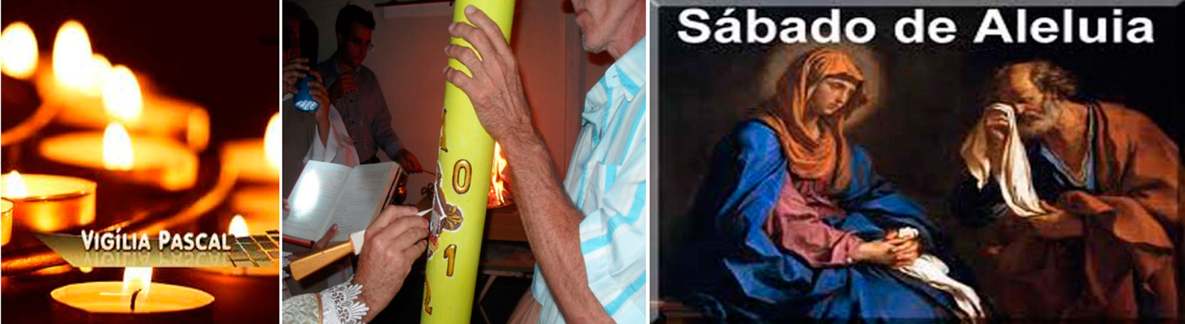 Por isso mesmo, a noite do Sábado é iluminada pela gloriosa Vigília Pascal, com toda a riqueza das cerimônias de que ela se compõe: a bênção do fogo e do círio pascal; a riquíssima liturgia da Palavra, do Antigo Testamento e do Novo, terminando com a proclamação do evangelho da Ressurreição de Jesus; a bênção da água do batismo e a eventual celebração de alguns batizados; e a solene Eucaristia da Ressurreição. E essa alegria pascal se prolonga porto do o Domingo de Páscoa, até a recitação das Vésperas no fim do dia.